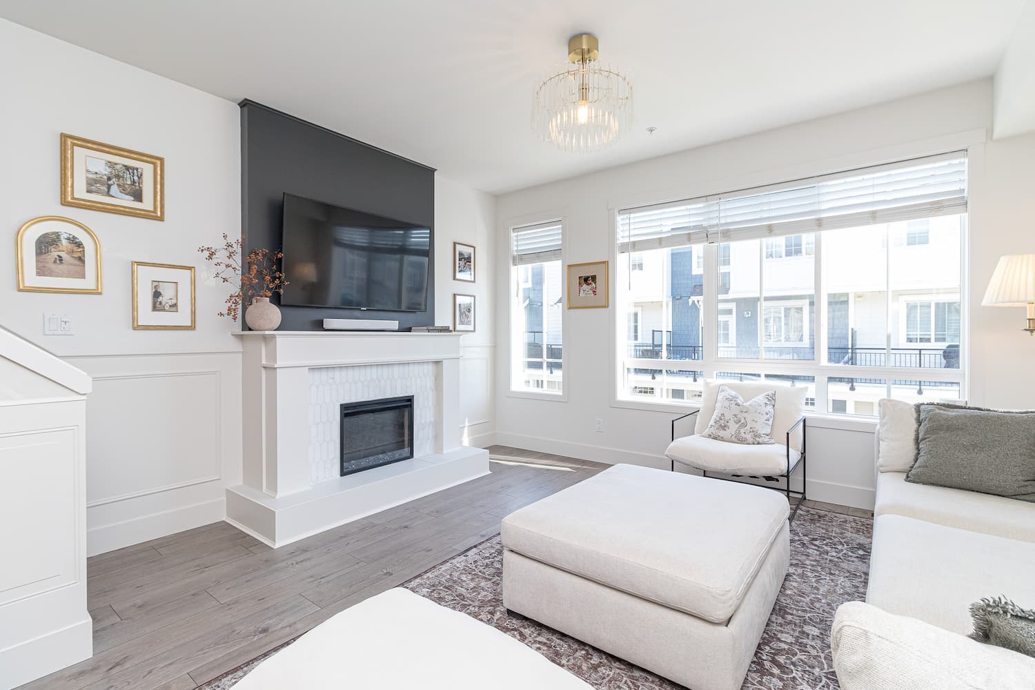 Electric fireplace adds instant warmth and cozy ambiance with easy, low-maintenance operation.