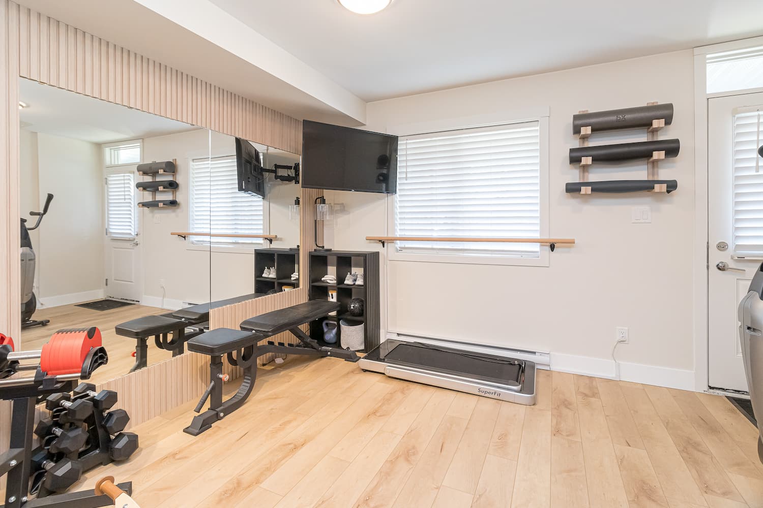 Gym/flex space offers versatile room for workouts, hobbies, or a home office setup.