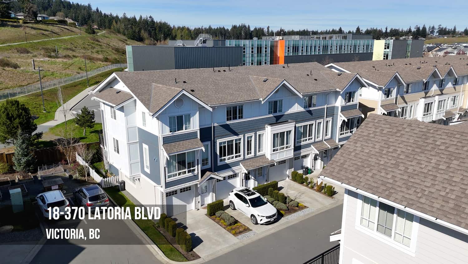 Welcome to Westshore’s only seaside community—Royal Bay! Located in the desirable West Commons collection, this well-planned townhome is just a 5-minute walk to the oceanfront. Offering 2 bedrooms and 3 bathrooms, the bright, functional layout features a spacious living/dining area and a modern kitchen with quartz counters, stainless appliances, gas range, pantry, and eating bar. A new heat pump provides efficient heating and cooling year-round. The tandem double garage + driveway fits up to 3 vehicles, with extra space for a gym, office, or workshop. Enjoy outdoor living with a fenced yard, covered patio, and balcony.Steps to Royal Bay Beach Park, trails, and amenities. Rentals & pets allowed—no size or number restrictions. Virtual tour & floorplan available. All measurements approx. Close to schools, shopping & all Westshore amenities. Ideal for families, first-time buyers or investors alike!